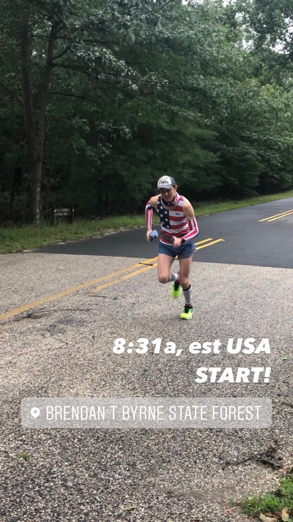 From Hurricane Laura, the weather forecast was not looking good. We figured it would rain but what we ended up with was far from what we expected. It was an overcast and muggy morning but donned in all of my USA gear, I was ready to go give my best effort. I was shooting for a 50 mile PR: something under 5:41 an hoping I could run in the 5:30’s. My feelings of 6:36 per mile pace was what I felt was an excellent goal pace and in training felt right what I could do.