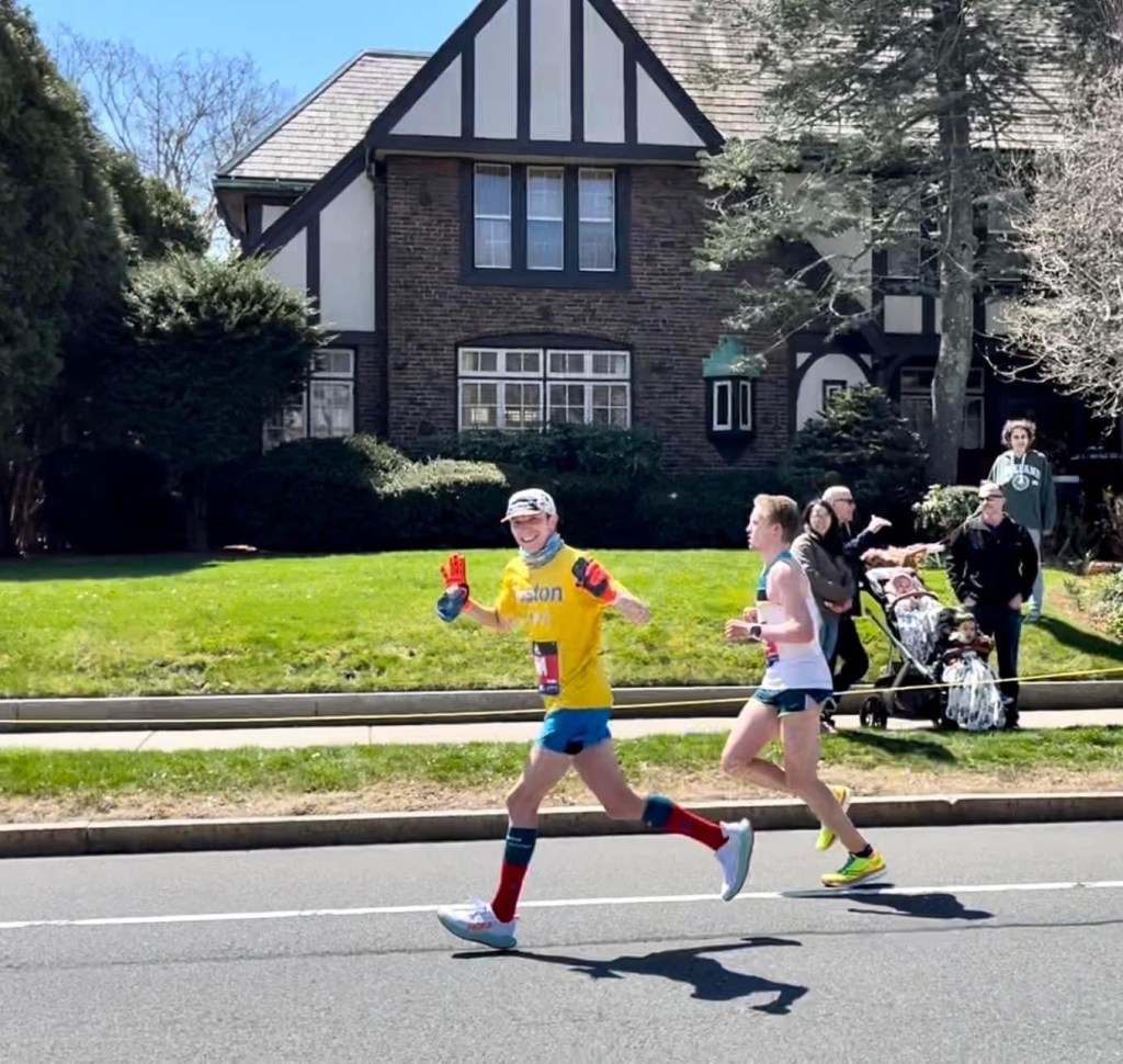 So, I decided to just chill, and use this run as more of a workout. I can run other Bostons to try and run fast. This was my first. I blew kisses to the Wellesley girls which they went wild as one of them faked fainting which was hilarious. They really know how to entertain the runners. I started giving hi-fives to people. I tried some of those Maurten gels just to get something to wet my palate. That stuff is like jello. The one I had was with the caffeine and that gave me a nice boost for a few miles. Miles 15-22 was my hardest stretch. I needed more water and it was at this point the field was spread-out enough where I could hydrate more. I literally stopped at the water stop and chugged the water. I did that for the next few stops. I started feeling a little sick as my pace slowed.