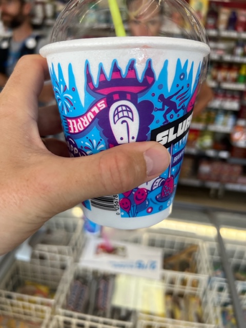 I think it was here that we had some free slurpees bought for us out of the group which was really nice since our App only gave us 1 free slurpee. They only cost like $1.15 so it was not a bank-breaker. I was getting into the groove of taking in the slurpees thought the sugar was hurting my stomach a little. It was around lunch time and had to wait until the next 7-11 for a slice of pizza.