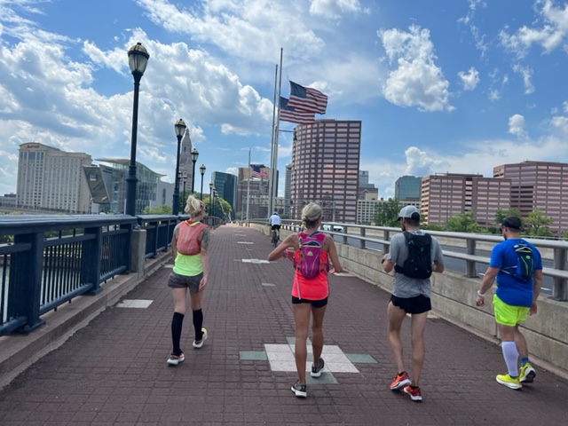 Promptly at 11am, we entered our first 7-11 to indulge on some delicious icy drinks. I added an additional challenge of drinking a different flavor of slurpee at each location and once you consume one flavor, it would be eliminated from the list. After our first stop we then headed to Manchester which was a 6.2 mile segment. We hit some miles in town and then onto a sweet bike path. It was a nice segment here. This would be our nicest stretch of shade before we would hit the more urban/suburban stretches. We ran together as a big group and it was fun to hang with everyone. Our pace hovered around 10-11 minute miles for the first chunk.